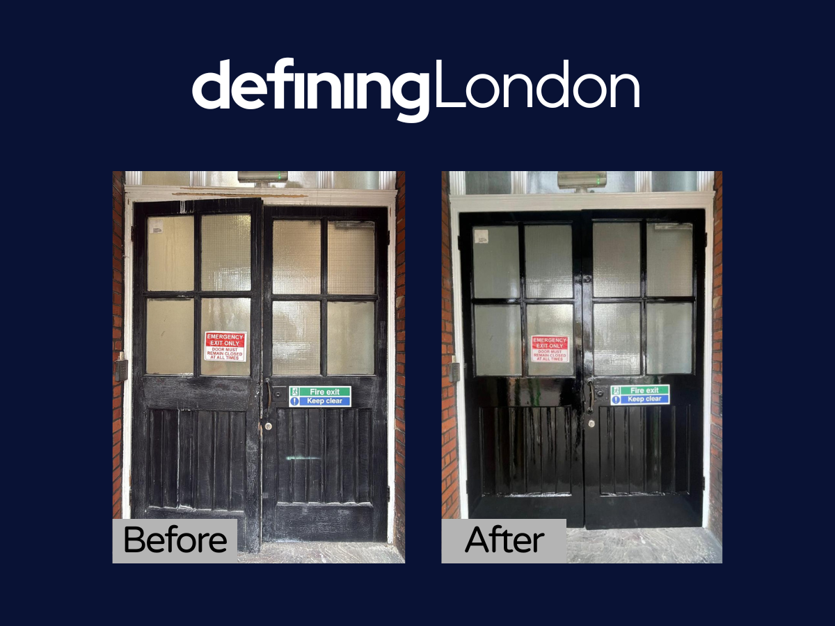 Physio room works in Tooting Broadway for a health sector client. Stains were treated, plasterboard repairs completed, and three timber doors repaired and repainted in the client’s new brand colours.