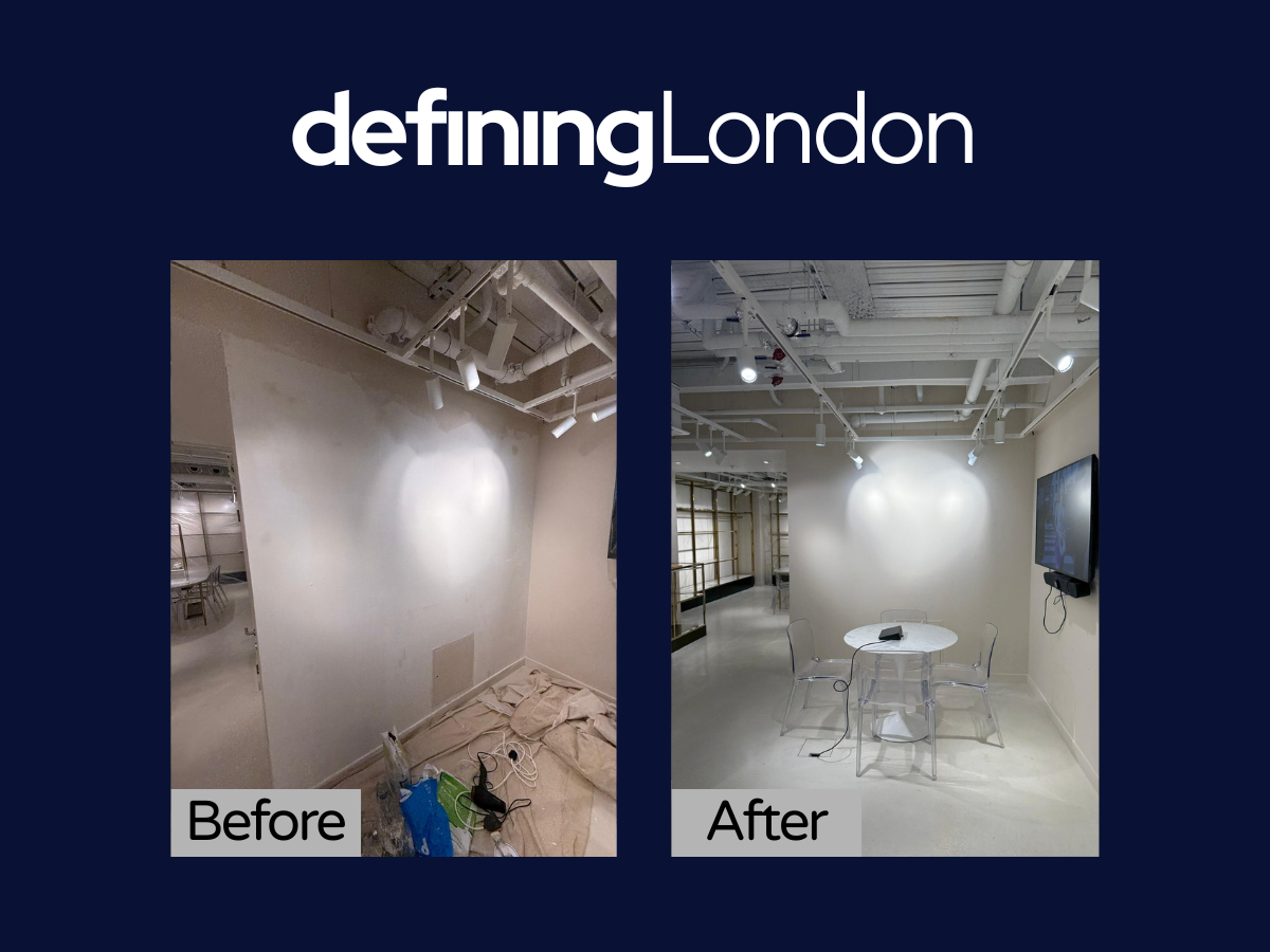 Showroom in Oxford Circus for an international client. Works carried out around their schedule, including removal of existing vinyl, wall repairs, and repainting in their chosen colours.
